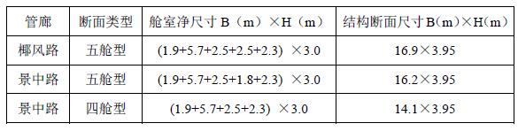 本次設(shè)計綜合管廊根據(jù)入廊管線情況與建設(shè)條件,管廊斷面尺寸為: